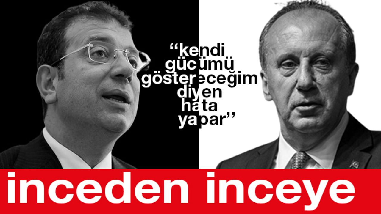 İmamoğlu, cumhurbaşkanı adaylığından çekilmeyeceğini açıklayan Memleket Partisi lideri Muharrem İnce'ye göndermede bulundu. "Ben bu birliğin dışında kalacağım kendi gücümü göstereceğim' diyen hata yapar, başkasının ekmeğine yağ sürer. O başkası demokrasiyi istemeyendir, biz demokrasiyi istiyoruz" dedi.