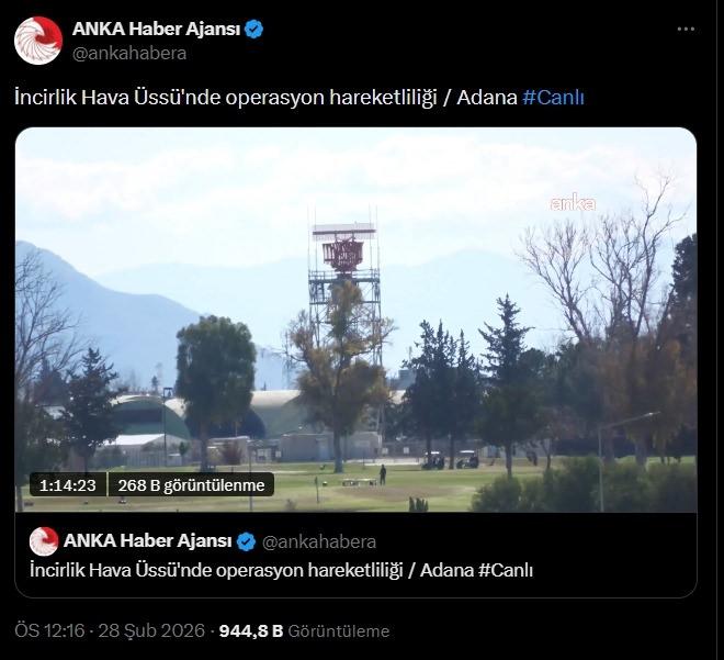 - Canlı yayında "İncirlik Hava Üssü'nde operasyon hareketliliği" başlığı atıldı.