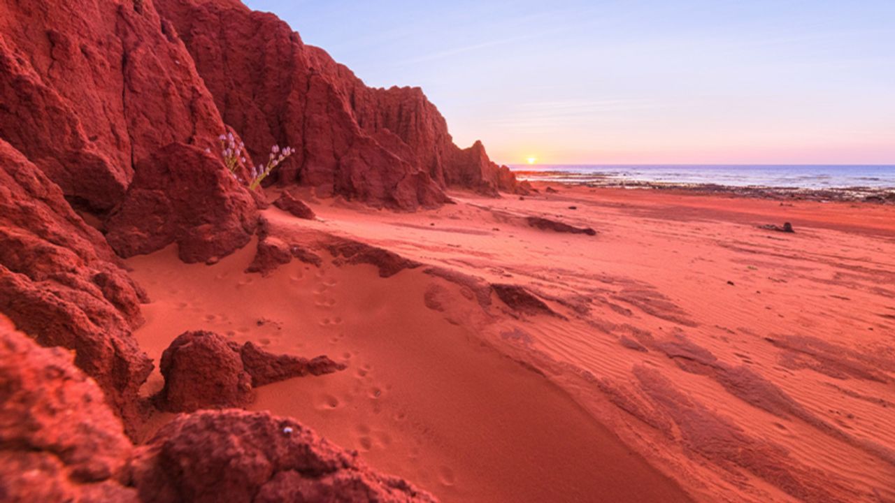 Kumdaki canlı kırmızı renk, adanın toprağında ve kayalarında bulunan yüksek oranda demir oksit, özellikle de hematit mineralinden geliyor.
