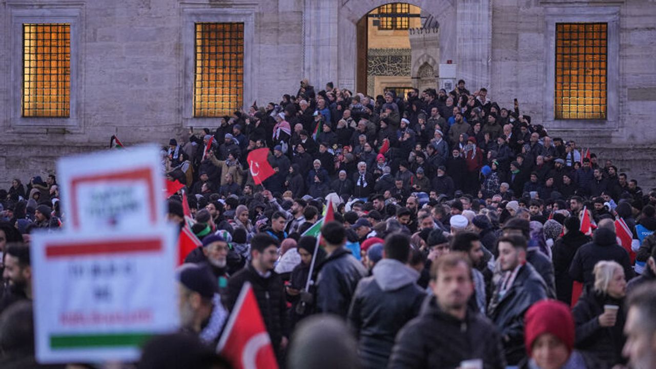 Sık sık tekbir getirerek, "Katil İsrail hesap verecek", "Şehitler ölmez", "İstanbul'dan Aksa'ya direnişe bin selam" sloganları atan katılımcılar Galata Köprüsü'ne ulaştı.