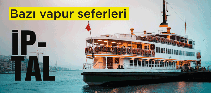 Şehir Hatları AŞ'den yapılan açıklamaya göre, 23-24 Eylül'de, 11.00-16.00 saatleri arasında Haliç'te gerçekleştirilecek "Haliç Su Sporları Merkezi Optimist Yarışları" sebebiyle bazı seferlerin iptal edildiği belirtildi.