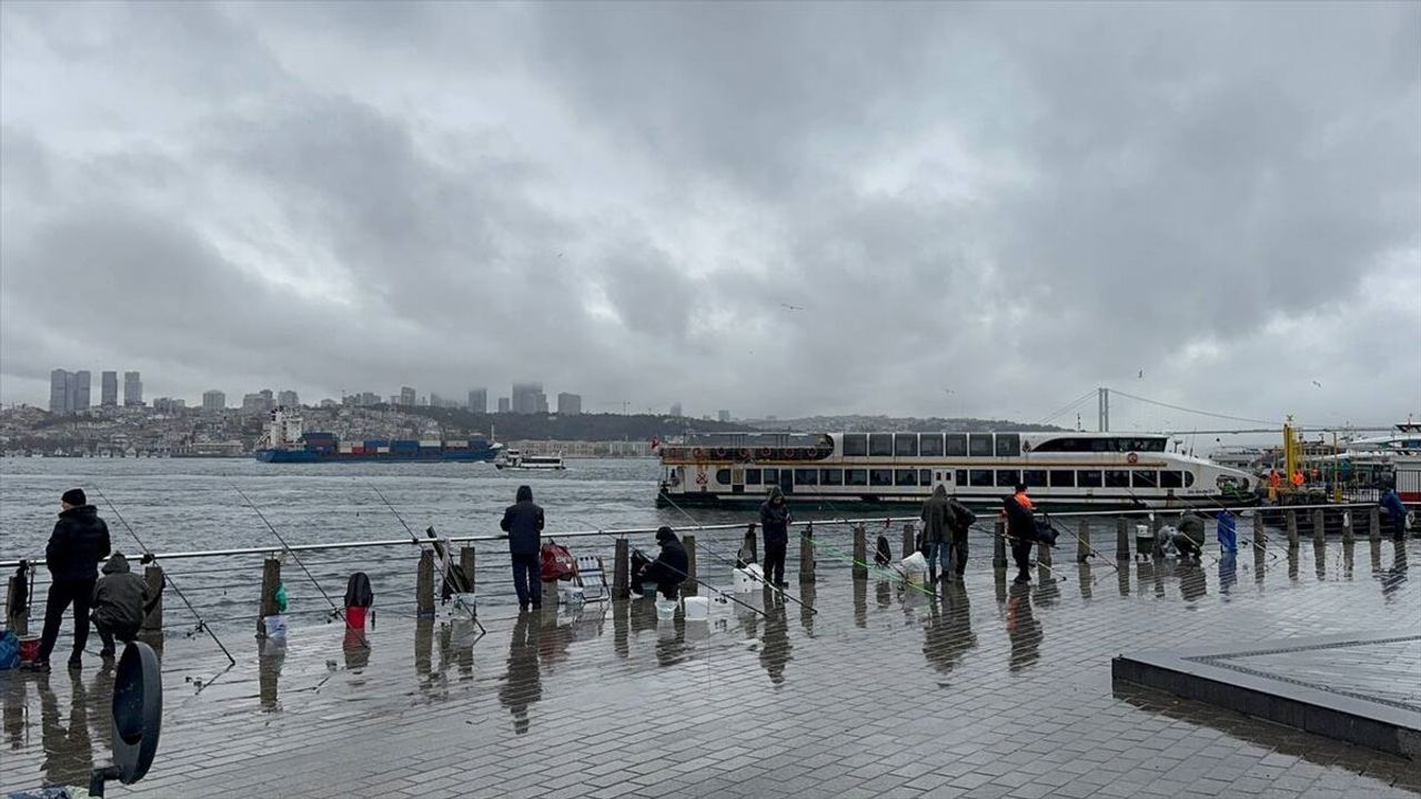 Yağışa aldırış etmeyen bazı vatandaşlar şemsiyeleriyle yürüyüş yaparken bazıları da sahillerde oltalarını atarak Boğaz'da balık avladı.