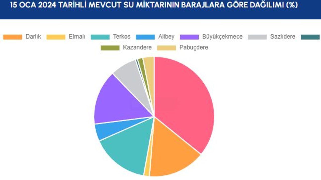 15.01.2024 tarihi itibariyle İstanbul'da barajlardaki doluluk oranları %58,3 oldu.