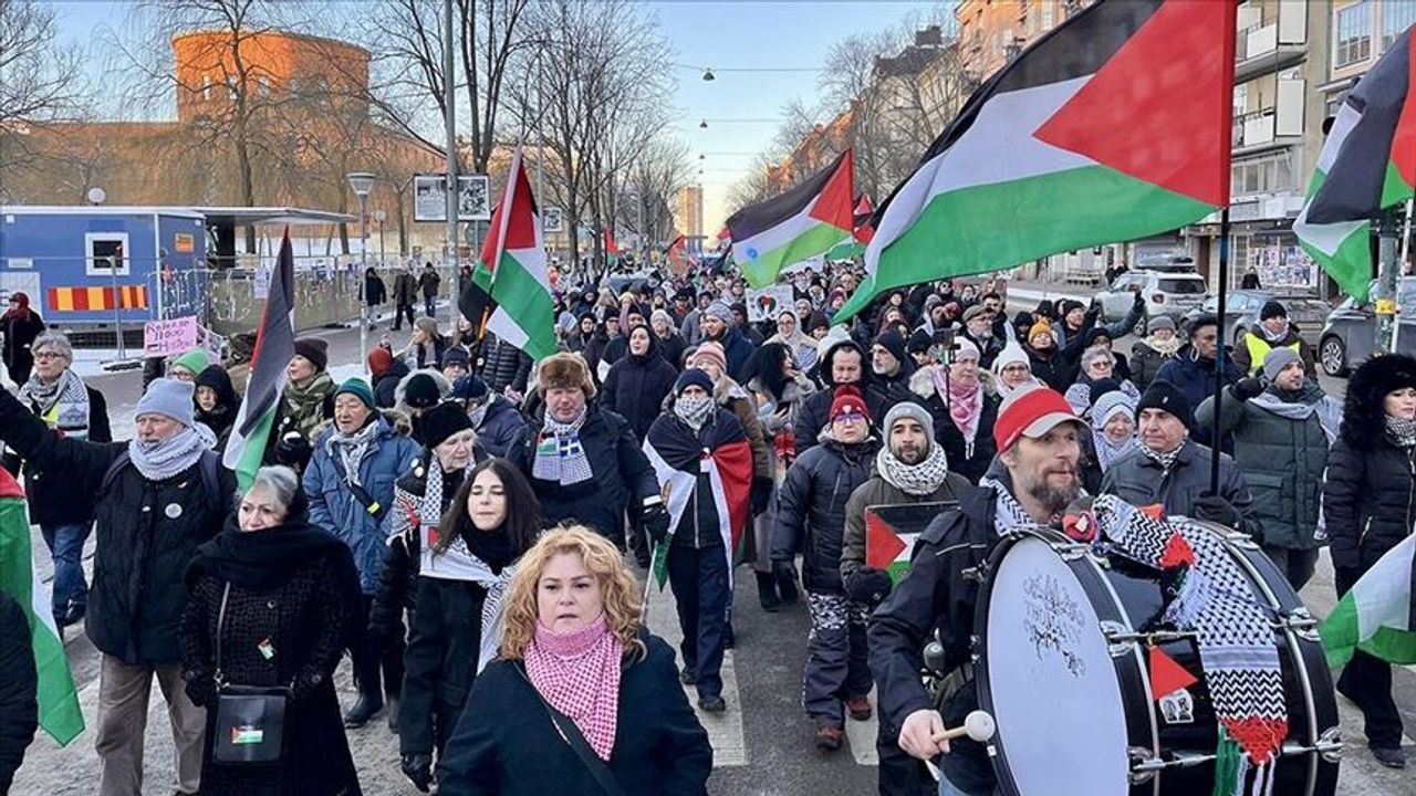 Stockholm'ün Odenplan bölgesinde toplanan grup, işgal rejimin Gazze'ye düzenlediği saldırılarına son vermesi, derhal ateşkesin ilan edilmesi ve insani yardım malzemelerinin bölgeye ulaştırılması çağrısında bulundu.