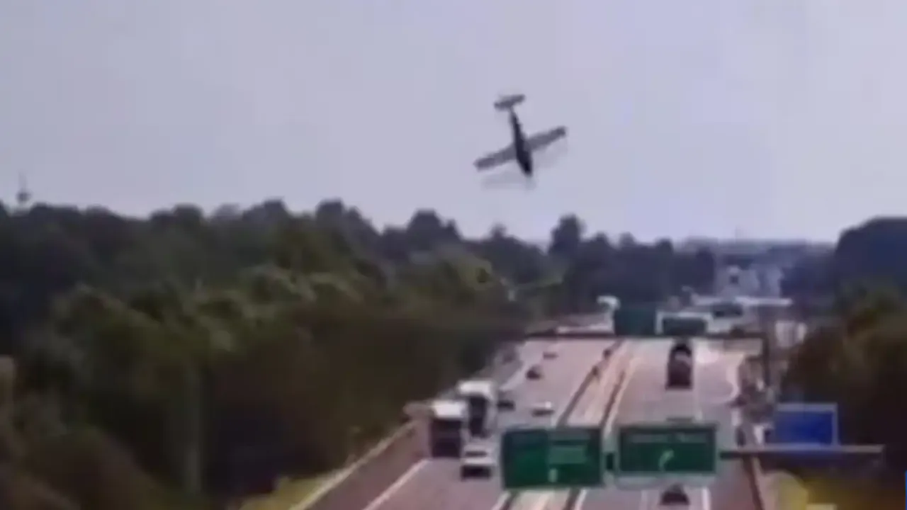 Otoyola düşen uçaktan etkilenen araç olmadığı ancak uçağın düştükten sonra alev aldığı bildirildi.