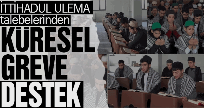 Küresel greve duyarsız kalmamak ve farkındalık oluşturmak için medrese talebeleri, Gazze için zikir, dua ve Fetih Suresini okudu.