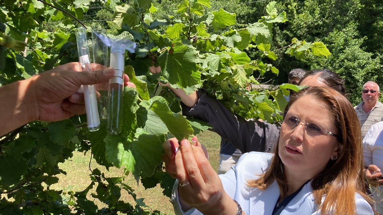 Enstitü ziraat yüksek mühendisi Erdoğan Ayan'ın zararlıyla mücadele çalışmalarına ilişkin bilgi vermesinin ardından köydeki fındık bahçesine arıların salımı yapıldı.