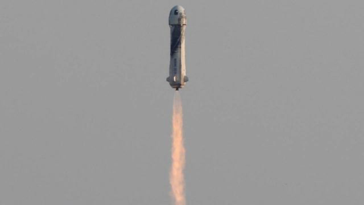 New Shepard roketi, Teksas'ın Van Horn bölgesinden fırlatılıyor.