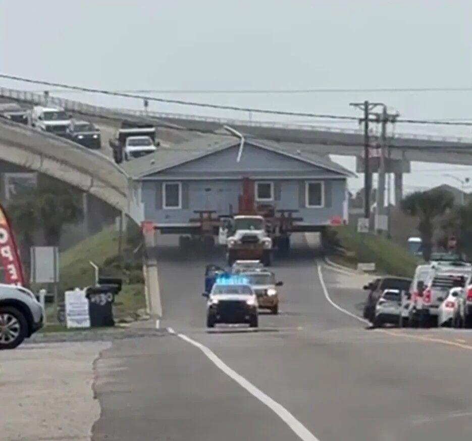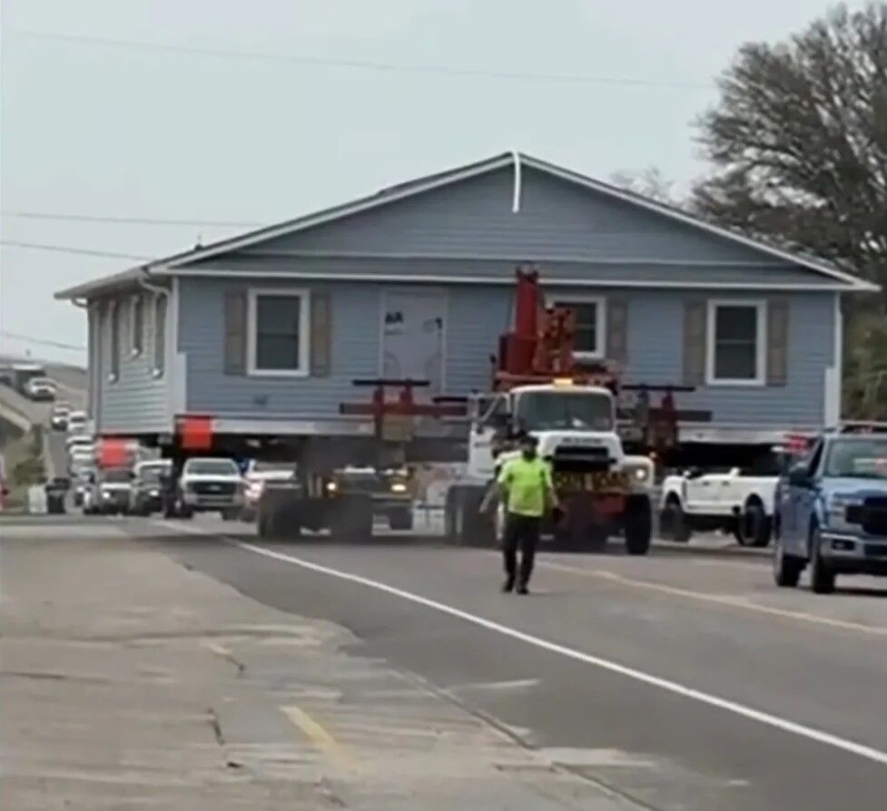 Devasa boyuttaki ev, sahilden alınarak yaklaşık 14 mil iç bölgedeki Supply kasabasına getirildi. Taşıma esnasında yol çalışanları, evin güvenli şekilde geçişi için dikkatli tedbirler aldı.