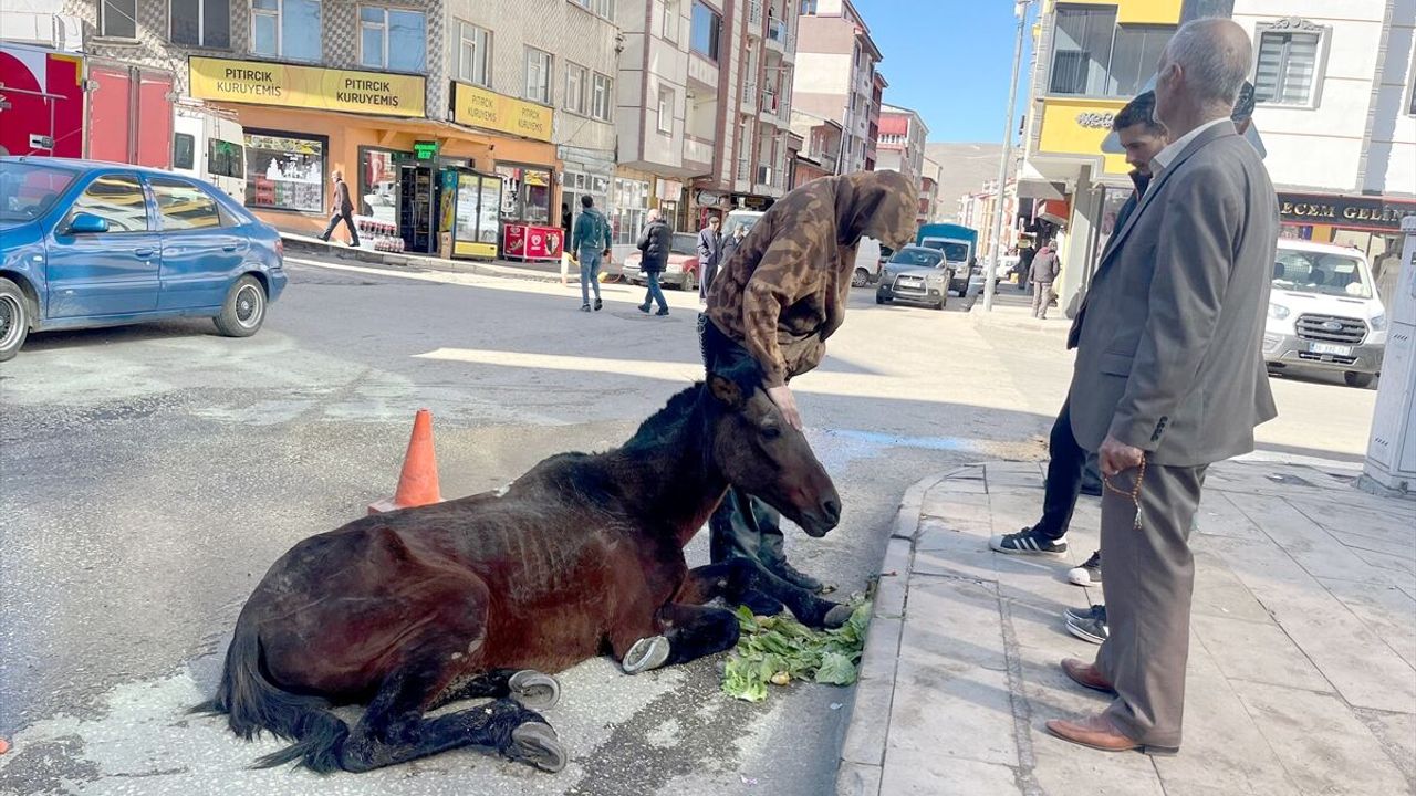 Sarıkamış ilçesi Halk Caddesi'nde vatandaşlar, zayıf ve bitkin halde yere yığılan atı fark etti.