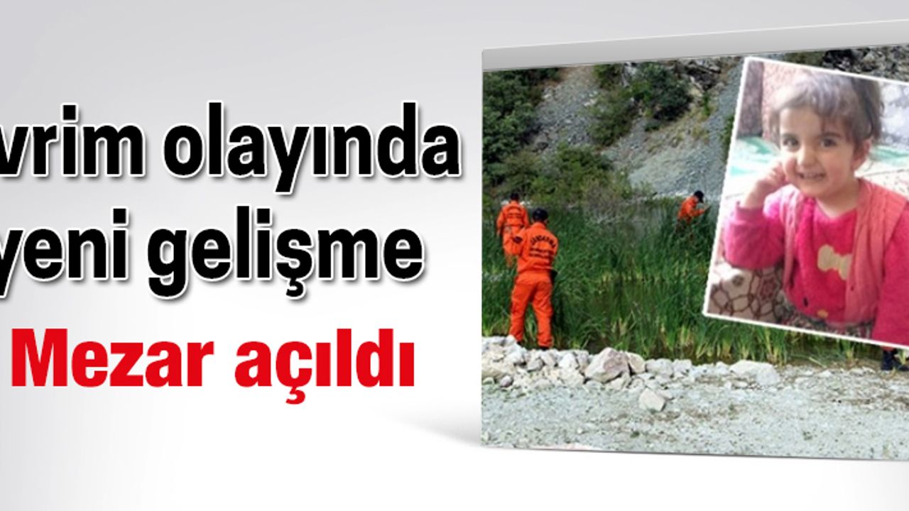 Ekipler, köy mezarlığında iz sürdü. Küçük Evrim'in katledilip gömülme ihtimaline karşı Jandarma Arama Kurtarma ekipleri, Mavi isimli kadavra arama köpeğiyle birlikte Yenisu Köyü mezarlığını inceledi. Jandarma ekipleri tarafından Sadık Atış'ın mezarı 1.5 saat süren çalışma sonrasında açıldı. Yapılan incelemede ise Evrim'e ait hiç bir ize rastlanmadı.