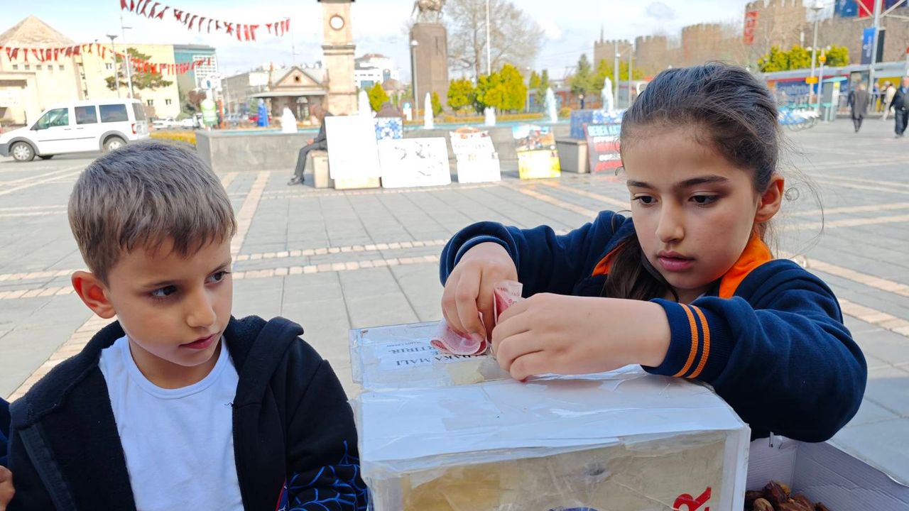 Kayseri’nin güzel yürekli çocukları, biriktirdikleri harçlıklarıyla anlamlı bir iyiliğe imza attı. Kumbaralarında topladıkları paraları alarak Filistin için kurulan yardım çadırına gelen minikler, birikimlerini bağışladılar.