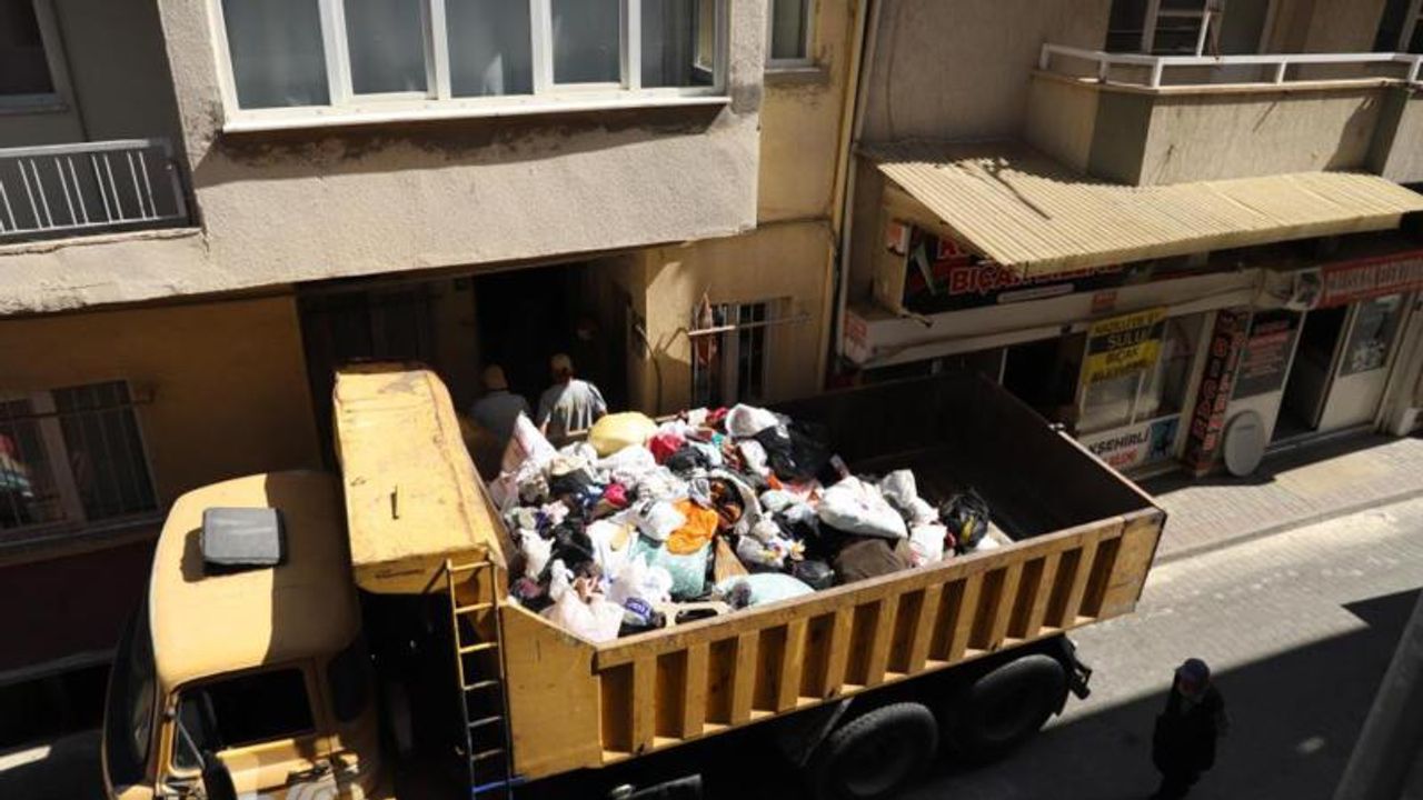 7 kamyon dolusu birikmiş eşya, kullanılamayacak duruma gelmiş kıyafetler ve katı atıkların biriktirildiği, çöplerden yaşanmaz hale gelen ev, Nazilli Belediyesi Temizlik İşleri Müdürlüğü personel tarafından temizlenirken, Sağlık İşleri Müdürlüğü personelince ilaçlanarak dezenfekte edildi. AA