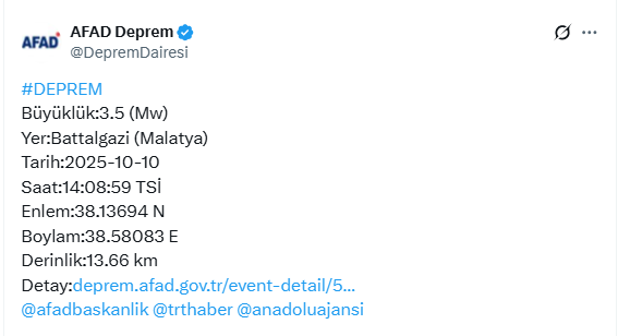 Deprem 13,55 km derinlikte gerçekleşti.