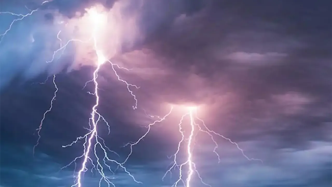 Kentin farklı bölgelerine sağanak yağmurun ardından yıldırım düştü.