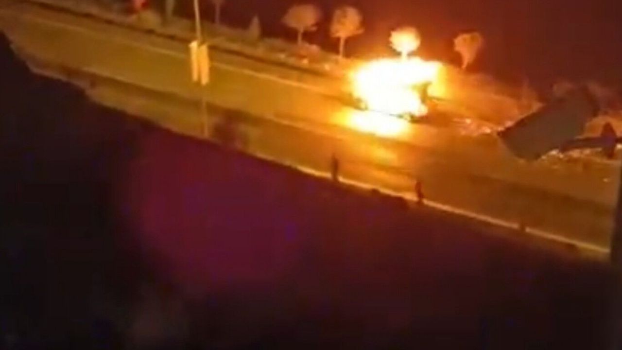 Yangını fark eden sürücü, aracın kapısını açarak dışarı atladı. Yanan araç ise bariyerlere çarparak durabildi. O anlar, çevredekiler tarafından cep telefonu kamerasıyla kaydedildi.