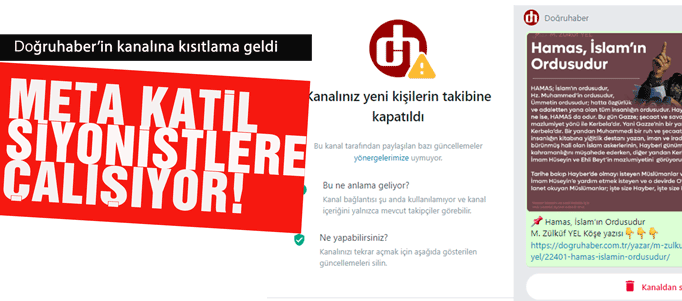 META bünyesinde olan mesajlaşma uygulaması WhatsApp, gazetemizin kanalında paylaşılan soykırım karşıtı haberler nedeniyle kanalımıza erişimi kısıtladı.
