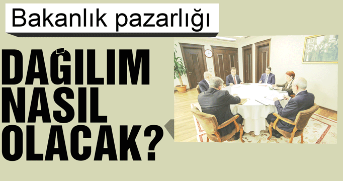 Bakanlık isimlerinin paylaşımı ise partilere düşen bakanlık sayısının kesinleşmesi sonrasında belirlenecek. Bir bakanlık hangi partiye bırakıldıysa, TBMM"deki komisyon başkanlığı da o partiye bırakılacak. Örneğin Milli Eğitim Bakanlığı"nı alan parti, TBMM Milli Eğitim Komisyonu