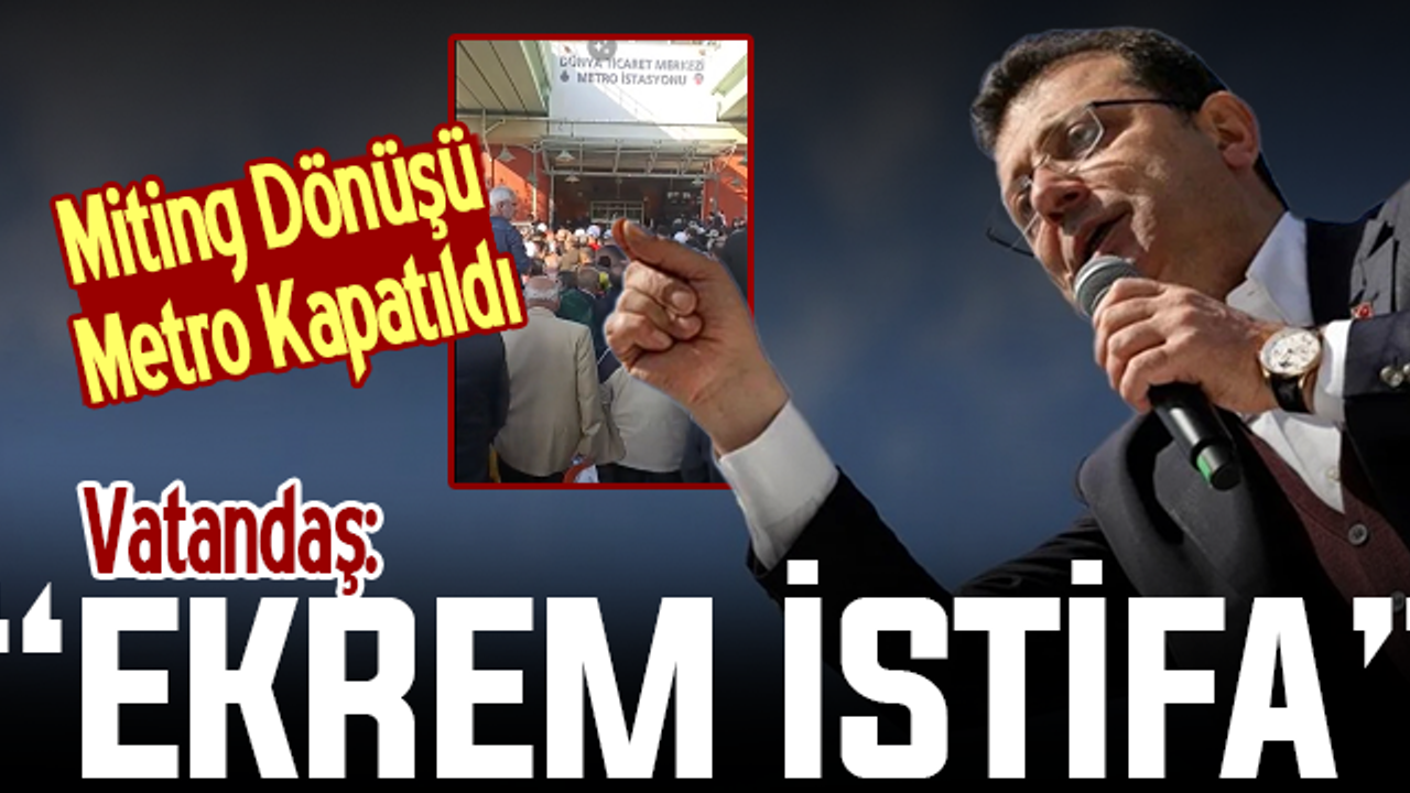 Miting dönüşü Dünya Ticaret Merkezi Metro İstasyonu önünde toplanan vatandaşlar metronun kapatılmasını “Ekrem İstifa” sloganları ile CHP"li İBB Başkanı Ekrem İmamoğlu'nu protesto ediyor.
