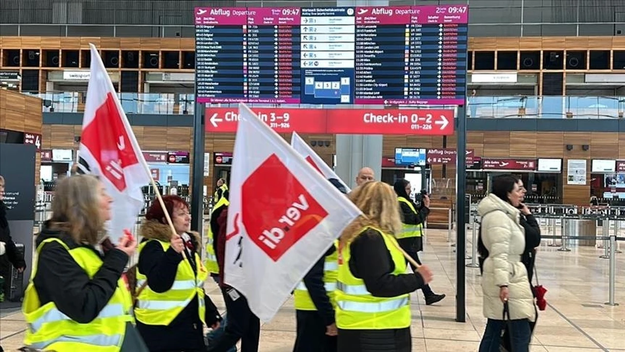 Alman sendika Ver.di, daha önce Almanya'nın en büyük ikinci havalimanında kamu sektörü çalışanları ve yer hizmetleri personeli için "maaşların iyileştirilmesi" görüşmelerinin ikinci turunun sonuçsuz kalmasının ardından grev kararı almıştı.