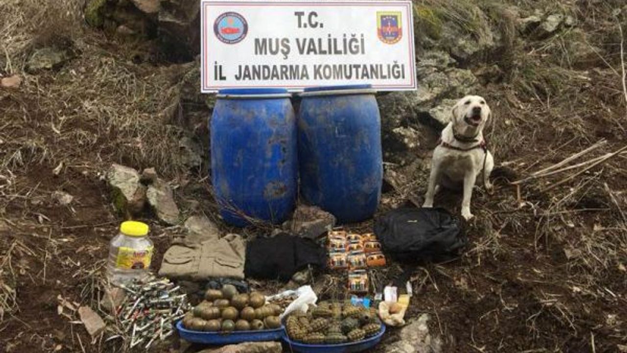 Muş'un Varto ilçesi kırsalında düzenlenen operasyonda, kayaların arasına gizlenmiş 90 el bombası, 92 fünye, çok sayıda Bixi fişeği ve çok miktarda muhtelif malzeme ele geçirildi.