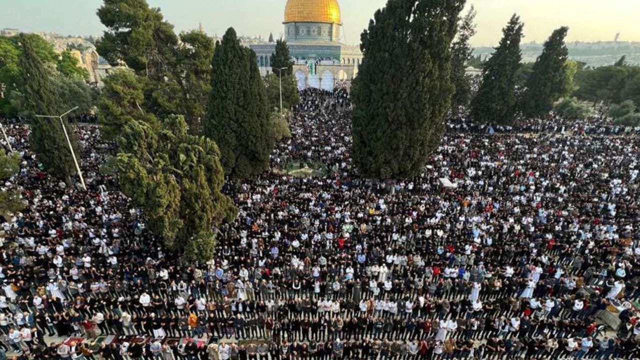ودُعي الفلسطينيون للصلاة في باحات المسجد الأقصى للاحتفال بالعيد في الأماكن المقدسة والدفاع عنها.