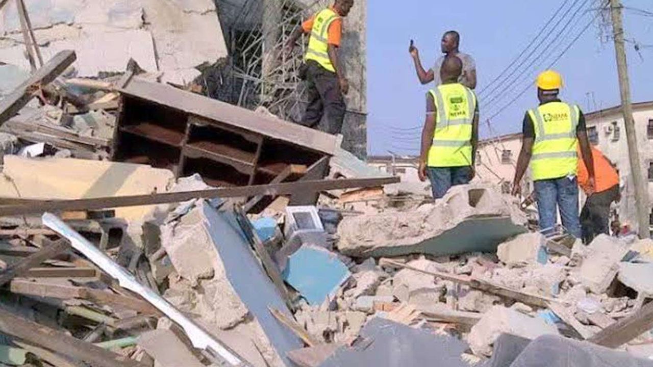 Lagos'un Oba Idowu Oniru caddesindeki 7 katlı bir bina henüz bilinmeyen bir nedenle çöktü.