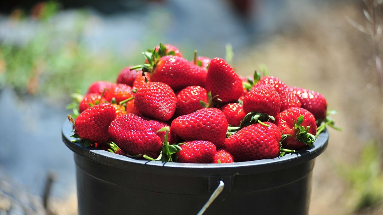 Yaklaşık 600 metrekare alanda bulunan serada topraksız tarım tekniği kullanılarak üretilen çileklerin ilk hasadı yapıldı.