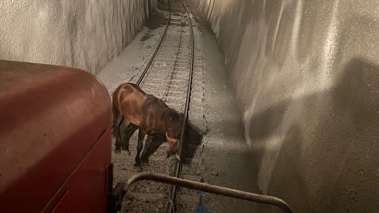 Makinistler, demir raylara bağlı atı çözüp tünelden dışarı çıkardıktan sonra yoluna devam etti.