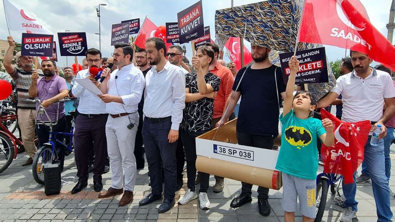 Dayanılmaz hale gelen zamları protesto etmek için bir araya geldiklerini söyleyen Saadet Partisi Kayseri İl Başkanı Av. Baki Coşkun, “Her geçen gün zam haberleri ile yatıp zam haberleri ile kalkar hale geldik. Enflasyon almış başını giderken halkın sorunları da her geçen gün hızla büyümeye devam ediyor. Yapılan son zamlarla birlikte motorin ve benzin fiyatları 30 lira sınırına dayandı. Geçen yıl haziran ayında benzin ve mazot 7,5 lira seviyesinde iken bugün artık vatandaş aracıyla sokağa çıkamaz hale geldi. Bir yıl içinde akaryakıta yüzde 300"lere varan zamlar yaparak vatandaşı canından bezdiren iktidar sahipleri adeta yaptıkları açıklamalar ile halkın sorunlarını görmezden gelmeye devam ediyorlar. Buradan iktidara sesleniyoruz: Ey yöneticiler, halkımız yapılan bu zamlara artık yeter diyor. 20 yıllık iktidar sarhoşluğunuz gözlerini kör mü etti. Her geçen gün kontak kapatan bu kadar insanı neden görmezden geliyorsunuz? Halkımız zamların altında ezilmeye devam ederken ekonomiden sorumlu kişiler neden hala pişkin pişkin vatandaşla dalga geçer gibi konuşuyor. Ülke insanımız her gün bir önceki günü arar hale geldi. Eskiden kuruş kuruş gelen zamlar artık lira lira gelir oldu. Milletimiz 3 günde bir yapılan bu zamlardan illallah etmiş durumda. Hala bu isyan seslerine kulak tıkamaya devam mı edeceksiniz? Ne bekliyorsunuz, illa birileri karşınıza geçip yazar kasa mı fırlatsın bu feryatları duymuyor musunuz?” dedi.