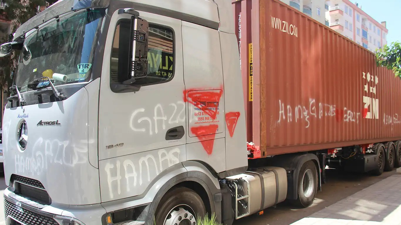 Akyazı'nın Pazarköy Caddesi'nde park halinde bulunan işgal rejmine ait ZİM firmasının tırının üzerine Filistin destekçisi bir grup genç tarafından "kahrolsun terörist israil" yazıldı. Yapılan eylem video kaydına alınarak sosyal medyada paylaşıldı.