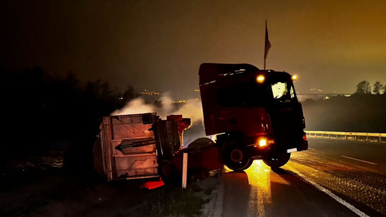 Ekipler, tırın bulunduğu yerden çekici yardımıyla çıkarabilmesi için çalışmaya başladı.
