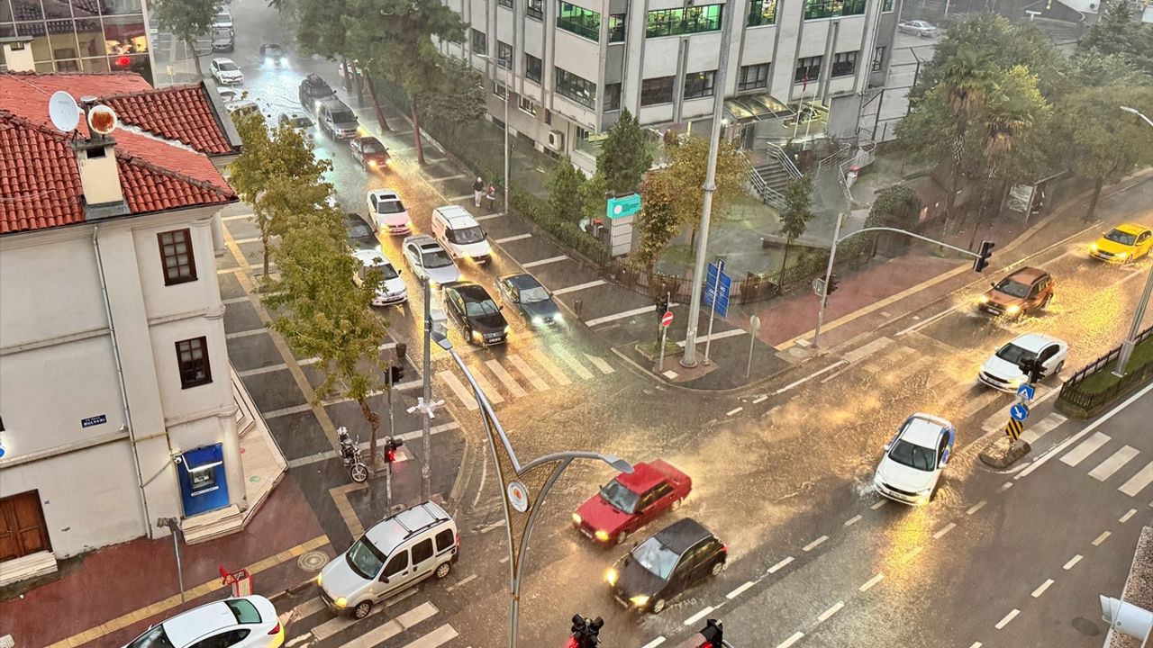 Atatürk Bulvarı'nda oluşan su birikintileri nedeniyle trafikte aksamalar yaşandı.