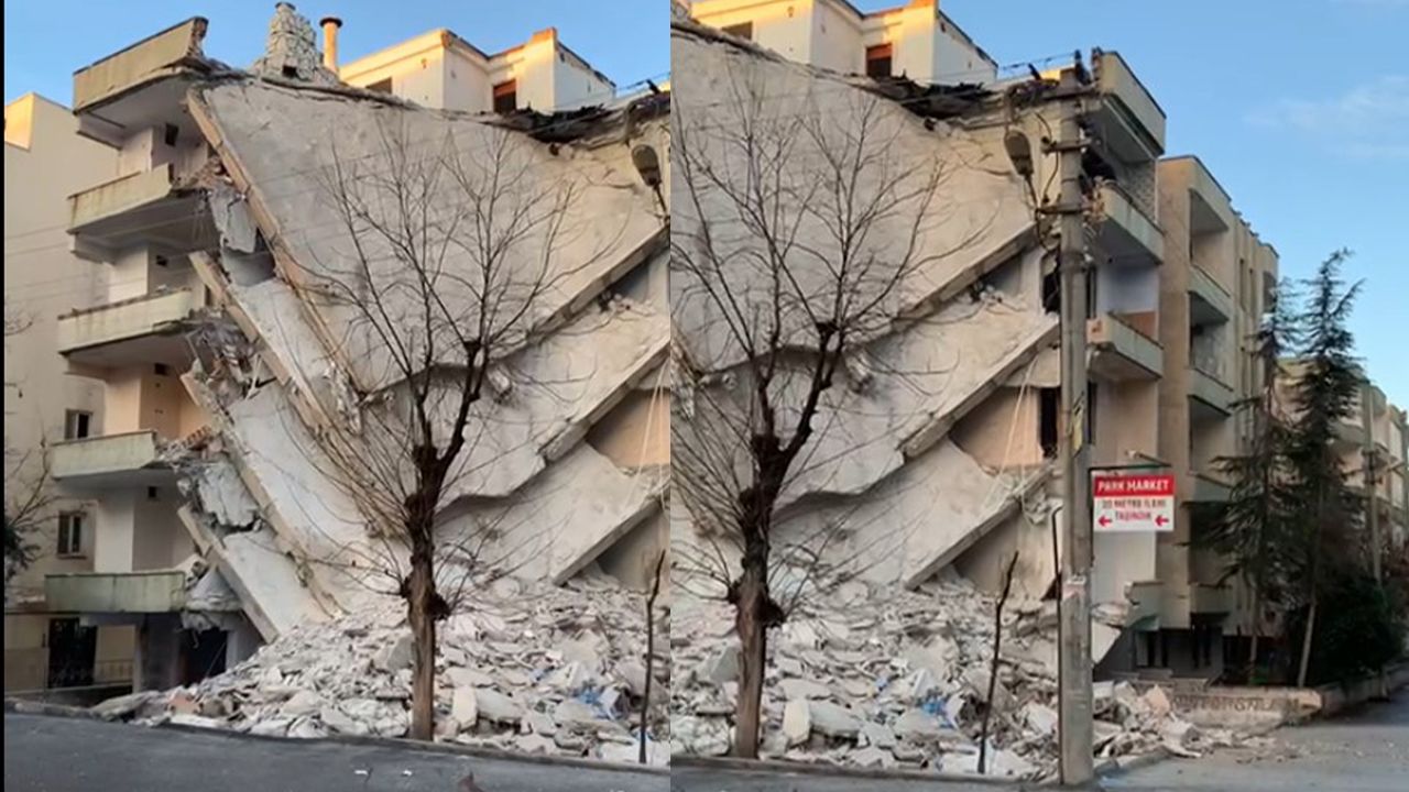 Edinilen bilgilere göre, 5 katlı ağır hasarlı binanın bir kısmında çökme meydana geldi.
