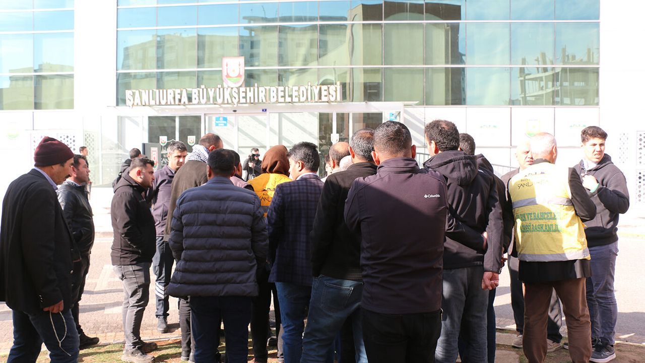 Şanlıurfa Büyükşehir Belediyesi tarafından işten çıkarılan Park ve Bahçeler Müdürlüğü çalışanları, belediye binası önünde toplanarak durumu protesto etti.