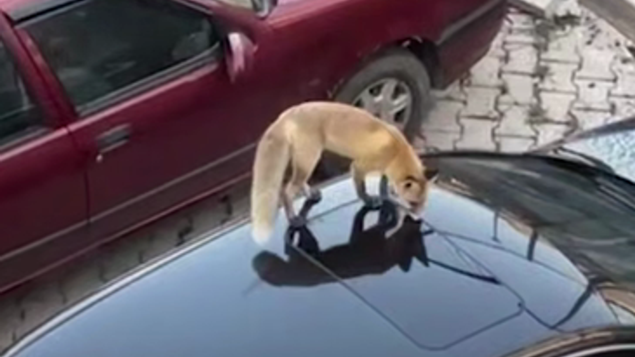 Burada bir süre yiyecek arayan tilki, bir otomobilin üzerine çıktı. Etrafta dolaşan tilki, daha sonra gözden kayboldu.