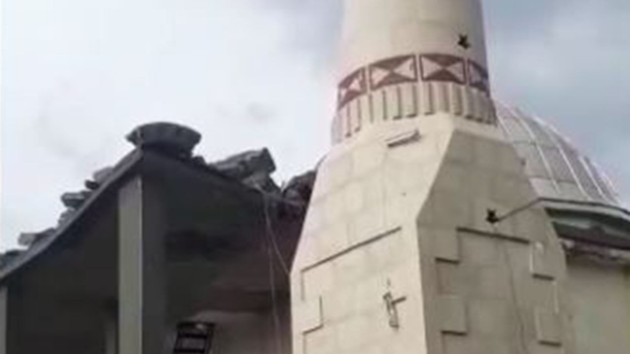 Diyarbakır'ın Silvan ilçesinde, şiddetli fırtına ve sağanak nedeniyle caminin minaresi yıkıldı, ağaçlar devrildi.