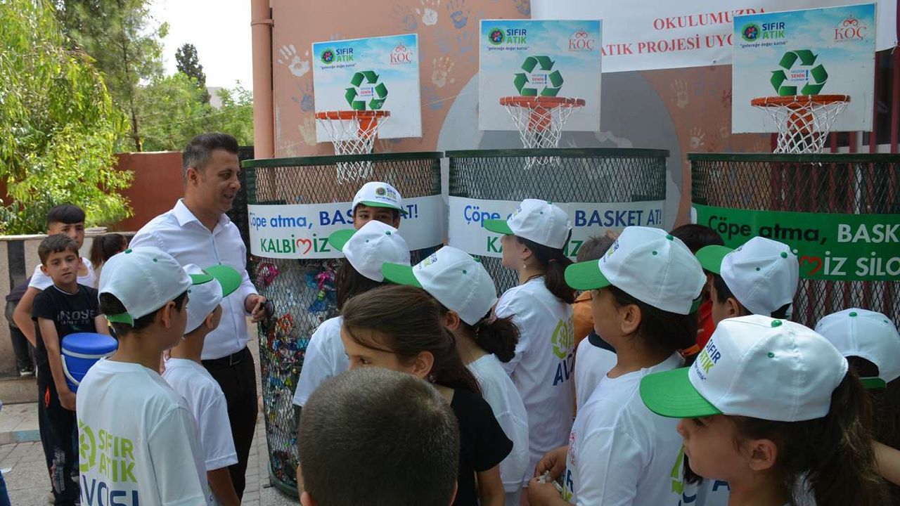 Koç İlkokulu Müdürü Ömer Değer, "Bu projemizde odak noktası olarak öğrencilerimizi seçerek eğitim verdik. Bilişim ağı üzerinden verilen atık eğitimlerine katıldık, sertifikalarımızı aldık. Okulumuzun altyapısını oluşturduk. Sınıflar, konferans salonu, kantin öğretmenler odası ve okul bahçesi için gereken ekipmanları temin ettik. Her sınıfımıza plastik ve kâğıt kutuları bıraktık. Bahçemizde 'çöpe atma basket at' pankartlı basket potalarımızla öğrencilerimizi sürekli teşvik ediyoruz. Ailelerimizi de bu işe katmak için her öğrenci evlerindeki pet ve çöpleri okula getirerek okullarına katkı sağlamış olacak. İlk etapta 30 Hazirana kadar en az 30 ton atık kâğıt 1 ton plastik atık geri dönüşüme kazandırmak hedefimizdir. Daha sonraki süreçte bu katkı artacaktır. Bu şekilde topladığımız her 1 ton atık kâğıdın çevreye katkısı 17 yetişkin ağacı kurtarmak oluyor. Bir plastiğin doğada 100-300 yıl arasında kaybolduğu düşündüğümüzde bir ton plastik atığın doğaya ne kadar faydasının dokunduğu malumunuzdur" diye konuştu.