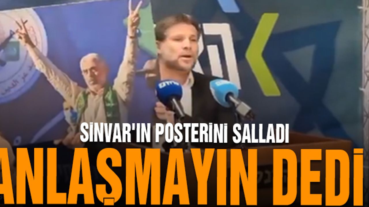 Siyonist işgal rejiminin Maliye Bakanı Smotrich, Hamas'ın Gazze lideri Yahya Sinvar"ın posterini havaya kaldırdı, ''Başarısız anlaşmayı kabul edersek Sinvar'ın Gazze'deki imajının yükseldiğini göreceğiz.'' dedi.