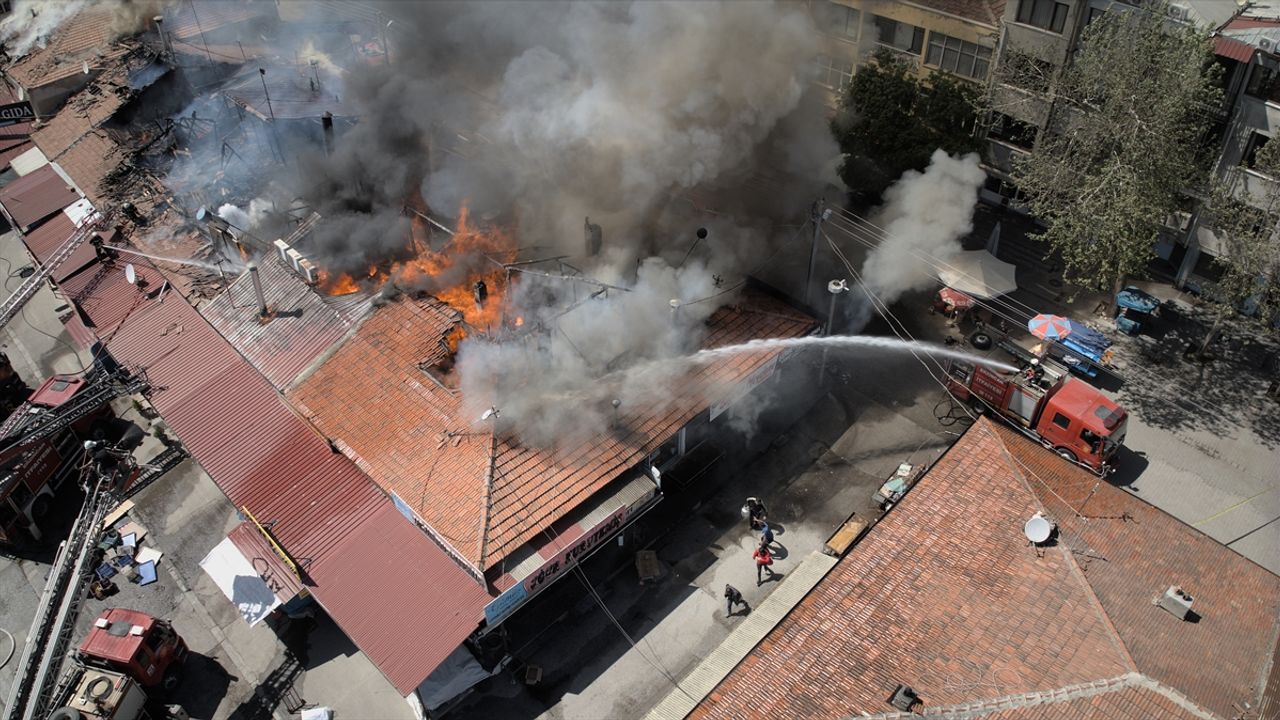 Şehir merkezindeki Buğday Meydanı’nda bulunan tek katlı sıralı haldeki iş yerlerinin çatısında yangın çıktı.