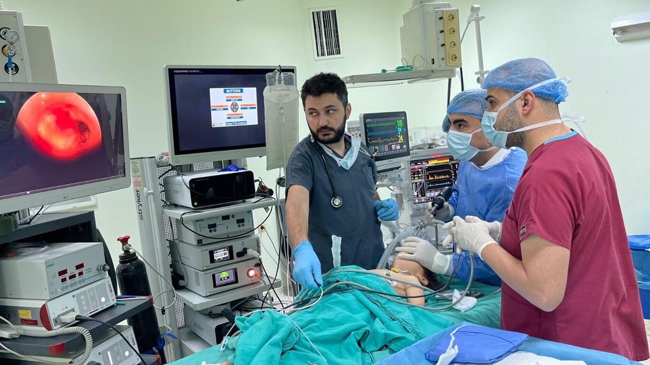 Çocuk hastalar, Göğüs Cerrahi Uzmanı Op. Dr. Serdar Munis"in Bronkoskopi ve Özufagoskopi cihazı ve ameliyat ortamında yaptığı başarılı tıbbi müdahale ile sağlıklarına kavuştu.