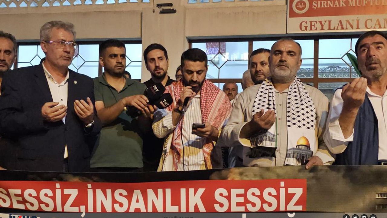 Peygamber Sevdalıları öncülüğünde yatsı namazı sonrası Geylani Cami önünde bir araya gelen Şırnaklılar, Küresel Sumud Filosu'nun korunması gerektiği çağrısında bulundu.