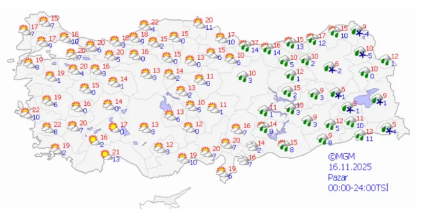 Meteoroloji Genel Müdürlüğü, hafta sonunu da kapsayan hava durumu raporunu paylaştı. Buna göre; cuma gününden itibaren yurdun doğu kesimlerinde kar yağışının etkili olması bekleniyor.
