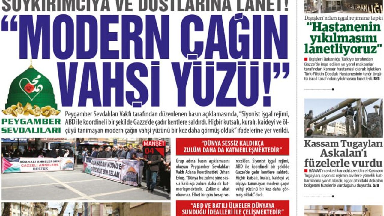 Programda; HÜDA PAR Adana İl Başkanı Fethullah Beyazçiçek de hazır bulundu. Kur'an-ı Kerim tilavetiyle başlayan programda Peygamber Sevdalıları Vakfı Adana Koordinatörlerinden Orhan Erkuş basın açıklamasını okudu. İşgal rejiminin bir sahur vaktinde çadırlarda uyuyan kadınlar ve çocukları hedef aldıklarını belirten Erkuş, sessiz kalındıkça zulmün daha da katmerleştiğini vurguladı. Gazze'de büyük bir katliam gerçekleştiğini ifade eden Erkuş, "300'den fazla bebek, çocuk, kadın ve mazlum kardeşimiz toprağın kara bağrına bırakıldı. Vicdanlar kor ateş oldu. Mazlumun ahı arşa ulaştı. Anaların feryatları vicdanları ateşe verdi. Artık ne söz yetiyor ne kelam. Dünya bu zulme yine sessiz kaldıkça zulüm daha da katmerleşmektedir. Zulümle abat olunmaz. Elbet bir gün hesap verecekler. Siyonist işgal rejimi, ABD ile koordineli bir şekilde Gazze'de çadır kentlere saldırdı. Hiçbir kutsalı, kuralı, kaideyi ve ölçüyü tanımayan modern çağın vahşi yüzünü bir kez daha görmüş olduk." dedi.