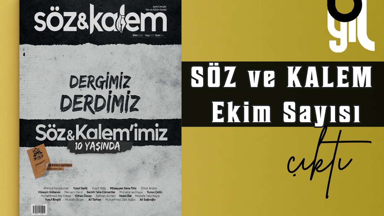 10 yaşına giren dergide, "Biz sana onların haberlerini bir gerçek (olay) olarak aktarıyoruz. Gerçekten onlar Rablerine iman etmiş gençlerdi ve biz de onların hidayetlerini arttırmıştık. (Kehf-13) Allah'a hakkıyla kul olmaya çalışan her Müslüman gencin kendisine şiar edindiği ayet bu olsa gerek. Zira imanları gereği dönemin en güçlü idarecisi olan Roma imparatorunun karşısında Allah'ın birliğini haykıran gençlerin imanı gıpta edilecek ve örnek alınacak bir imandır. Çünkü iman kişiyi aksiyoner yapar, edilgen değil etken yapar, pasif halden aktif hale getirir. 10 yıl önce yine bir Ekim ayında 'Vira Bismillah' diyerek yola çıkan dergimiz Söz&Kalem de yola çıktığı ilk gün Kehf suresinde bahsi geçen iman ve istikamet sahibi gençleri kendisine örnek aldı. En nihayetinde sözünü ve kalemini Allah için kullanan gençlerin ortak derdi olarak ortaya çıkan, Ashab-ı Kehf gençleri gibi imanları gereği hakkı haykırmayı kedisine şiar edinen ve bu ulvi amaç üzere yola çıkan gençler için bir buluşma noktası olmaya çalışan dergimiz Söz&Kalem 10'uncu yılına girdi. Allah'a hamd olsun ki 2013 yılının Ekim ayında çıkardığımız ilk sayımızın üzerinden tam olarak 10 yıl geçti ve yine hamdolsun ki bu ay 109'uncu sayımızla tekrardan sizlerin huzurlarınızdayız. Dile kolay 10 yıl! Dergimizi meydana getiren, dergimiz etrafında kenetlenen, okuma ve yazma kültürü oluşturmaya çalışan her bir yazarımız ve okurumuzun en nihai amacı yaratılış gayesi olan Rabbimize kulluk adına iyi ve güzel işler ortaya koyabilmektir. Geride bıraktığımız 10 yıl ve çıkardığımız 109 sayıda da bu amacı gözettik. Bundan sonraki süreçte de bu amaç uğruna bir çaba ortaya koymaya çalışacağız inşallah. Zira yüce Allah Mülk suresinin ikinci ayetinde, 'O, hanginizin daha güzel iş yapacağınızı sınamak için ölümü ve hayatı yarattı. O, üstündür, bağışlayandır.' diye buyurur. Dolaysıyla dünyaya geliş amacımız olan Allah'a kulluk ile birlikte diğer bir yaratılış amacımız da güzel işler yapmaktır. Bizler de Söz&Kalem dergisi olarak bu yaratılış amacımıza uygun bir şekilde, Allah'ı razı ve hoşnut edecek güzel işler yapma gayreti ile bu yola revan olduk ve iyi işler çıkarabilmek için gayret ettik. Allah"ın adını yüceltecek, O"nun davasını ilerletecek ve Müslümanlara fayda sağlayacak iyi işler ortaya koyma gayretinde bulunduk." ifadelerine yer verildi.