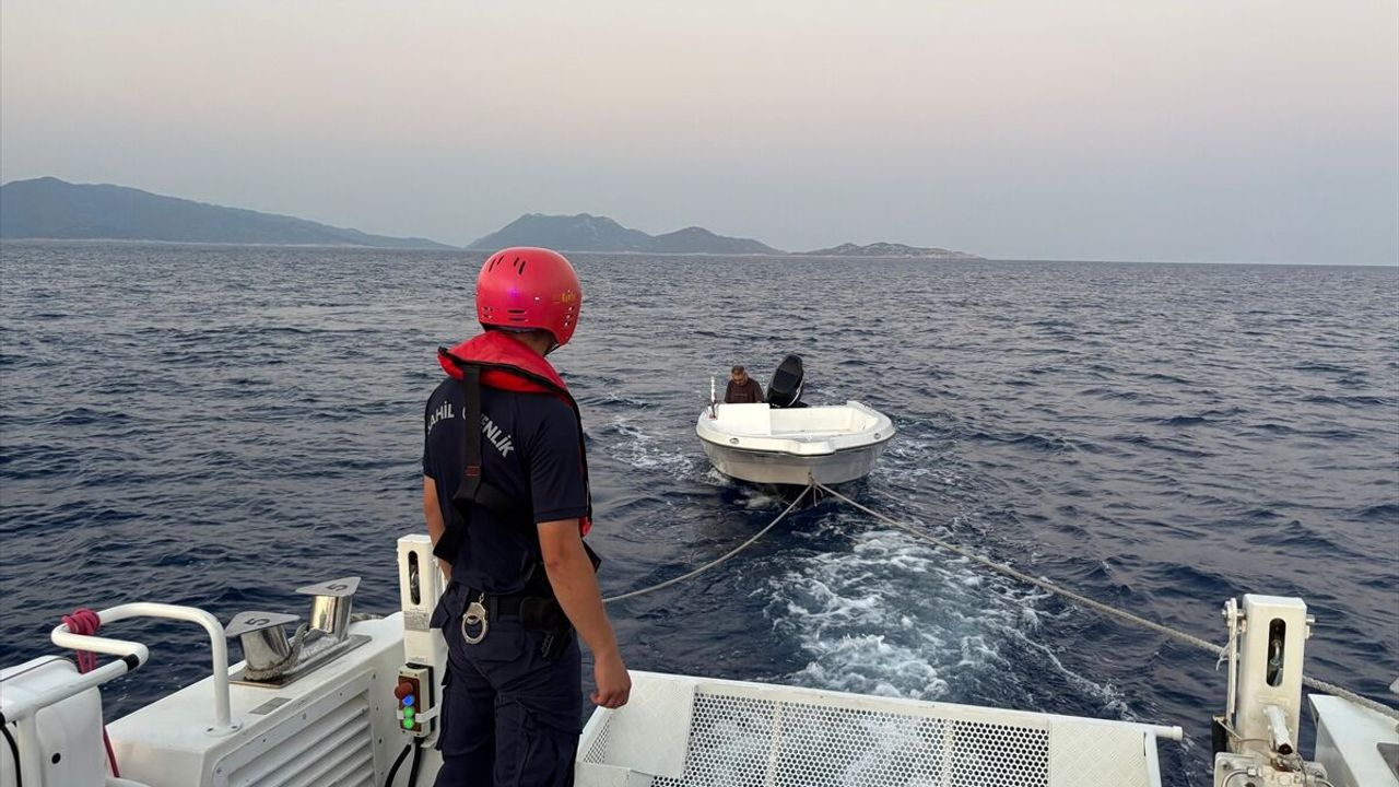 Uluburun mevkisinde görevli sahil güvenlik ekibi, makine arızası nedeniyle teknenin sürüklendiğini tespit etti.