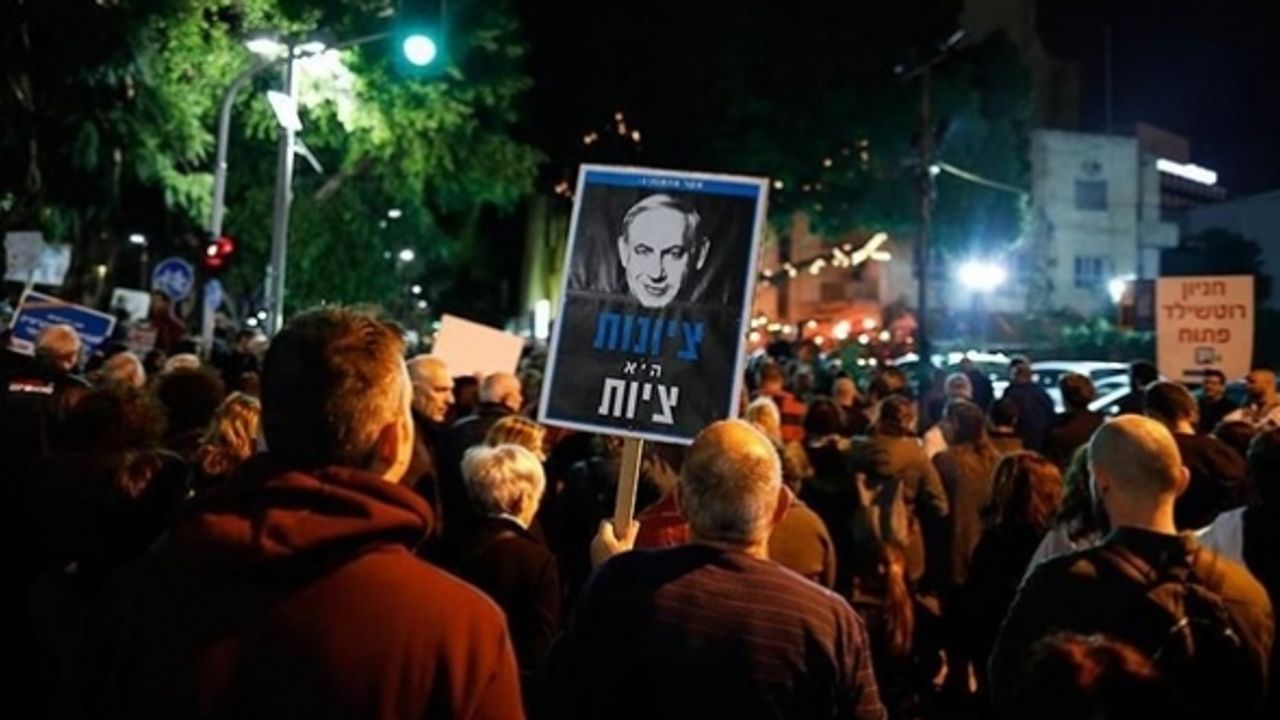 Tel Aviv'de toplanan binlerce gösterici Başbakan Binyamin Netanyahu hükümetinin "yargıyı zayıflatma" girişimlerini ve aşırı sağcı politikalarını protesto etti.