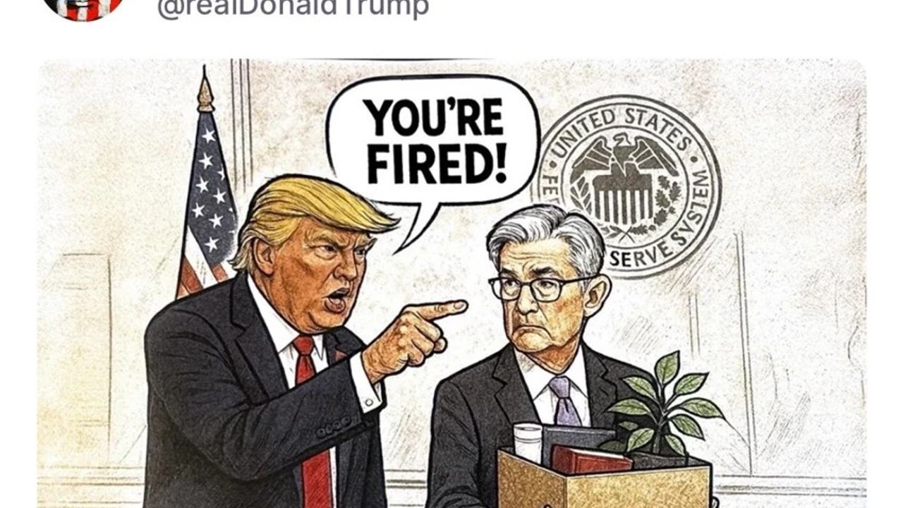ABD Başkanı Trump, Fed Başkanı Powell'ı görevden almasını temsil eden bir karikatürü sosyal medya hesabından paylaştı.