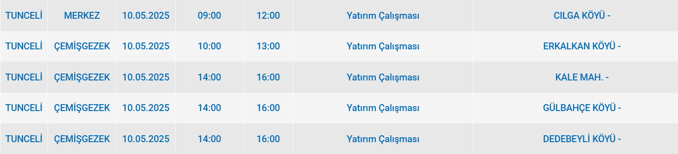 Fırat Elektrik, Tunceli'de bazı ilçe ve mahallelerde elektriğin kesileceğini duyurdu. Daha önceden organize edilmiş bakım ve iyileştirme çalışmaları nedeniyle uygulanacak kesintiye ilişkin detaylar belli oldu. İşte elektrik kesintisinin yaşanacağı ilçeler ve mahalleler…
