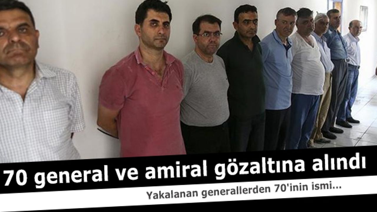 (FETÖ) darbe girişimiyle ilgili yurt genelinde 70 general ve amiral gözaltına alındı.
